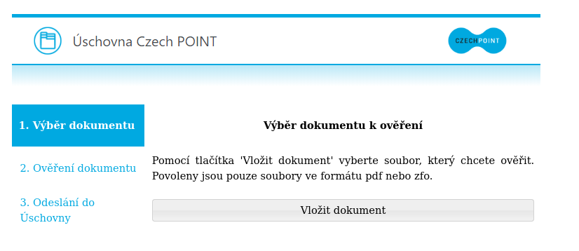 Otevře se nám formulář s tlačítkem Vložit dokument, pomocí kterého nahrajeme soubor k ověření: