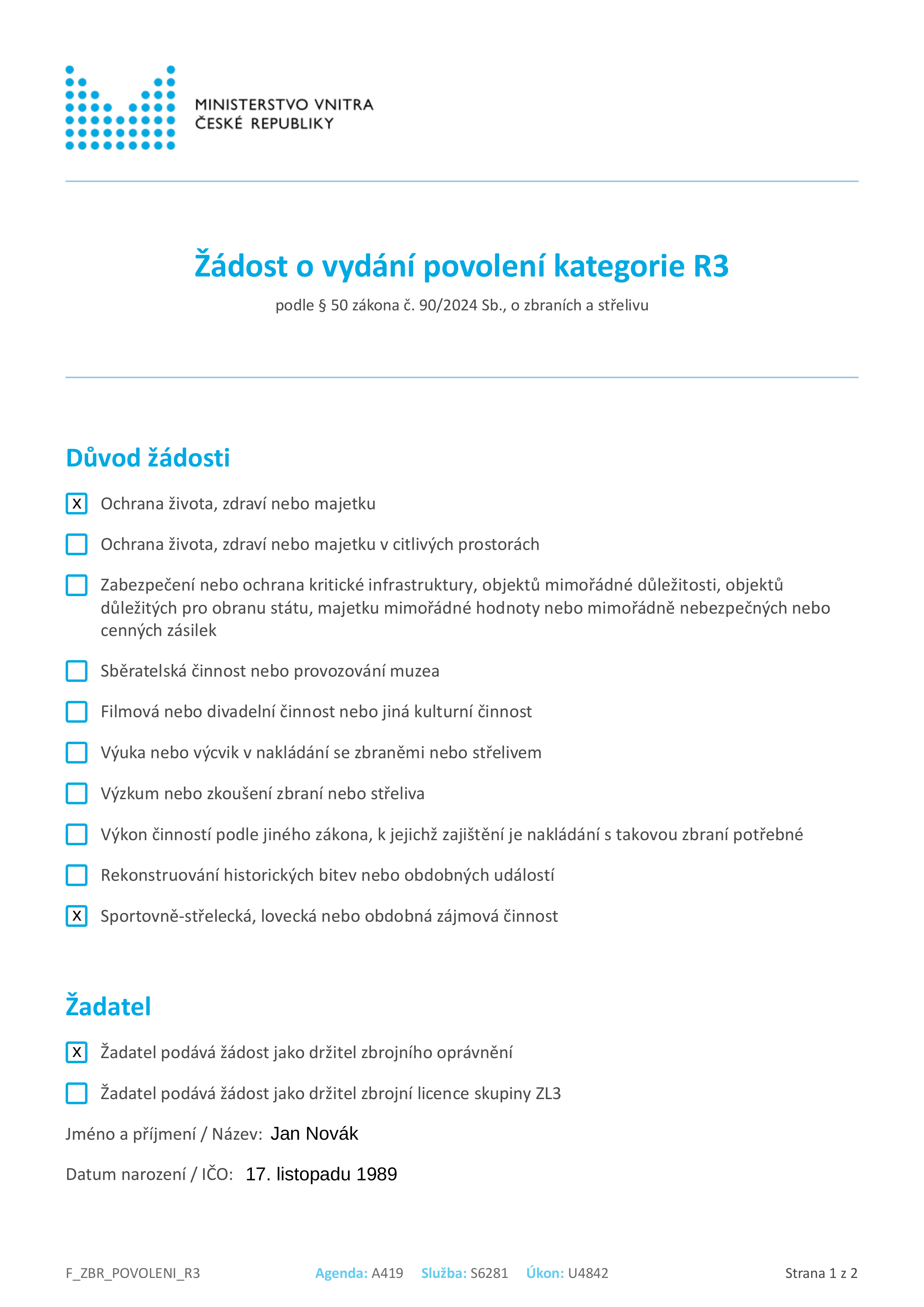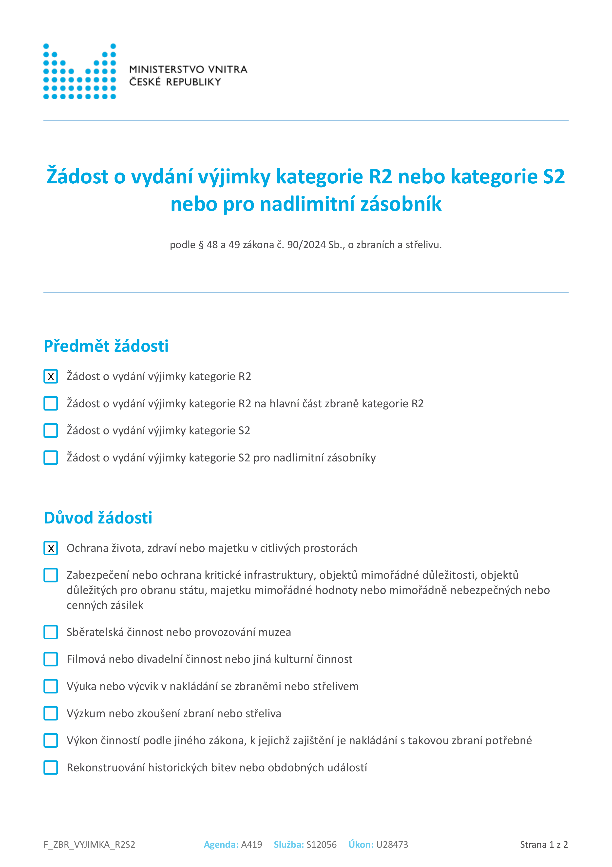[zde doplníme návod na vyplnění formuláře k žádosti o výjimku k držení zbraně kategorie R1, až bude k dispozici]