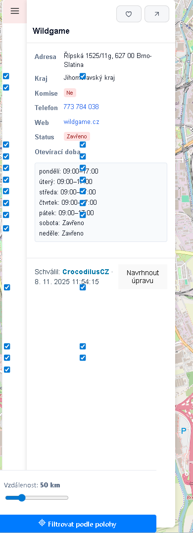 Ahoj, pri editaci střelnice se nedá v panelu posunout dolu a není tedy dostupné tlačítko uložit. Podobně v panelu Otevírací doba, kde se po editaci OD tlačítko Uložit posune dolů a zase se to nedá posunout.