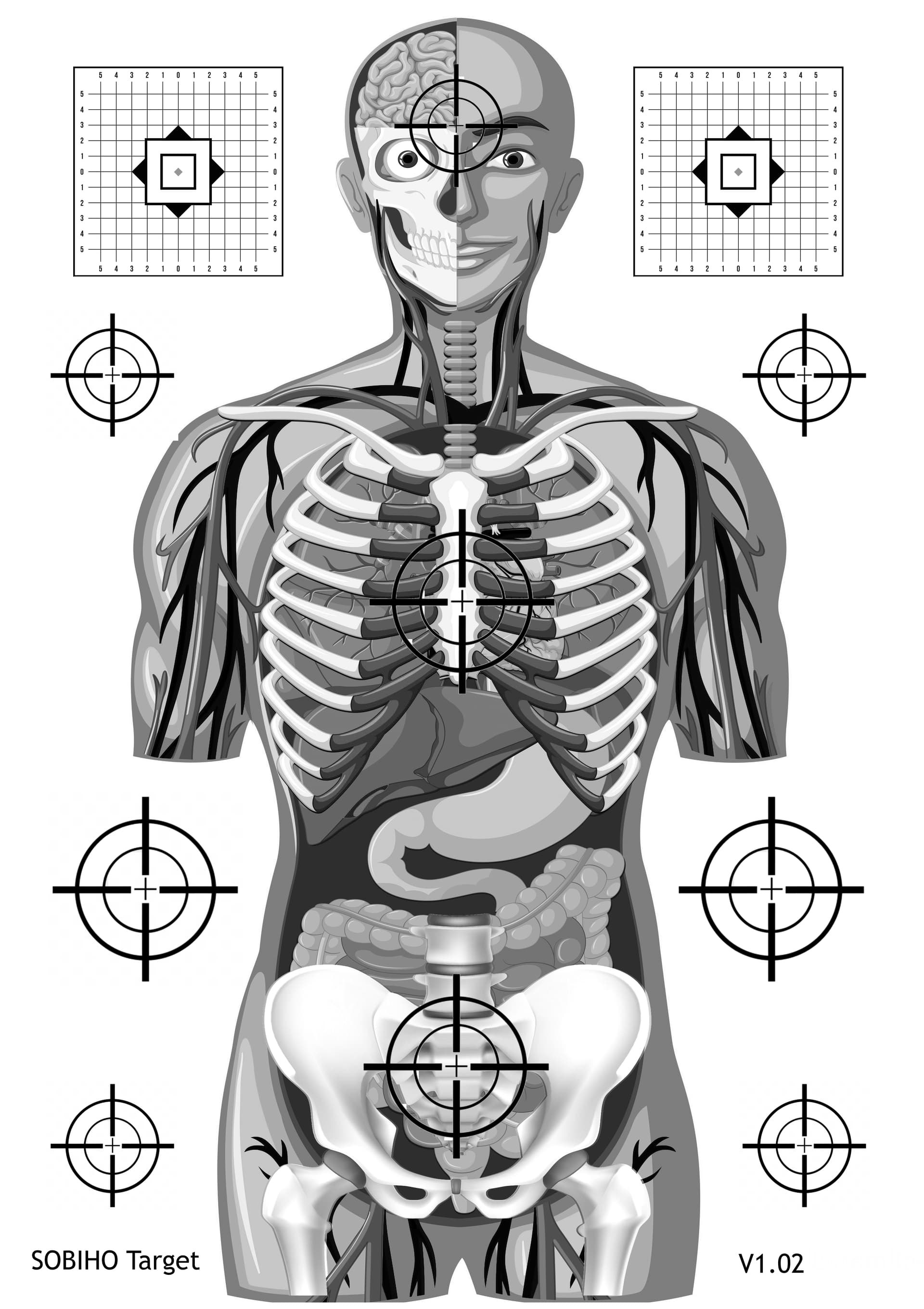 Problém většiny těch terčů je v tom, že jsou na yardy a/nebo v palcích nebo MOA. Takže, když se to vytiskne, tak jsou všechny rozměry “tak někdy mezi”.