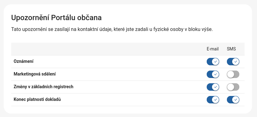 Poté zaškrtněte v sekci Upozornění Portálu občana příslušná políčka v řádku Konec platnosti dokladů:
