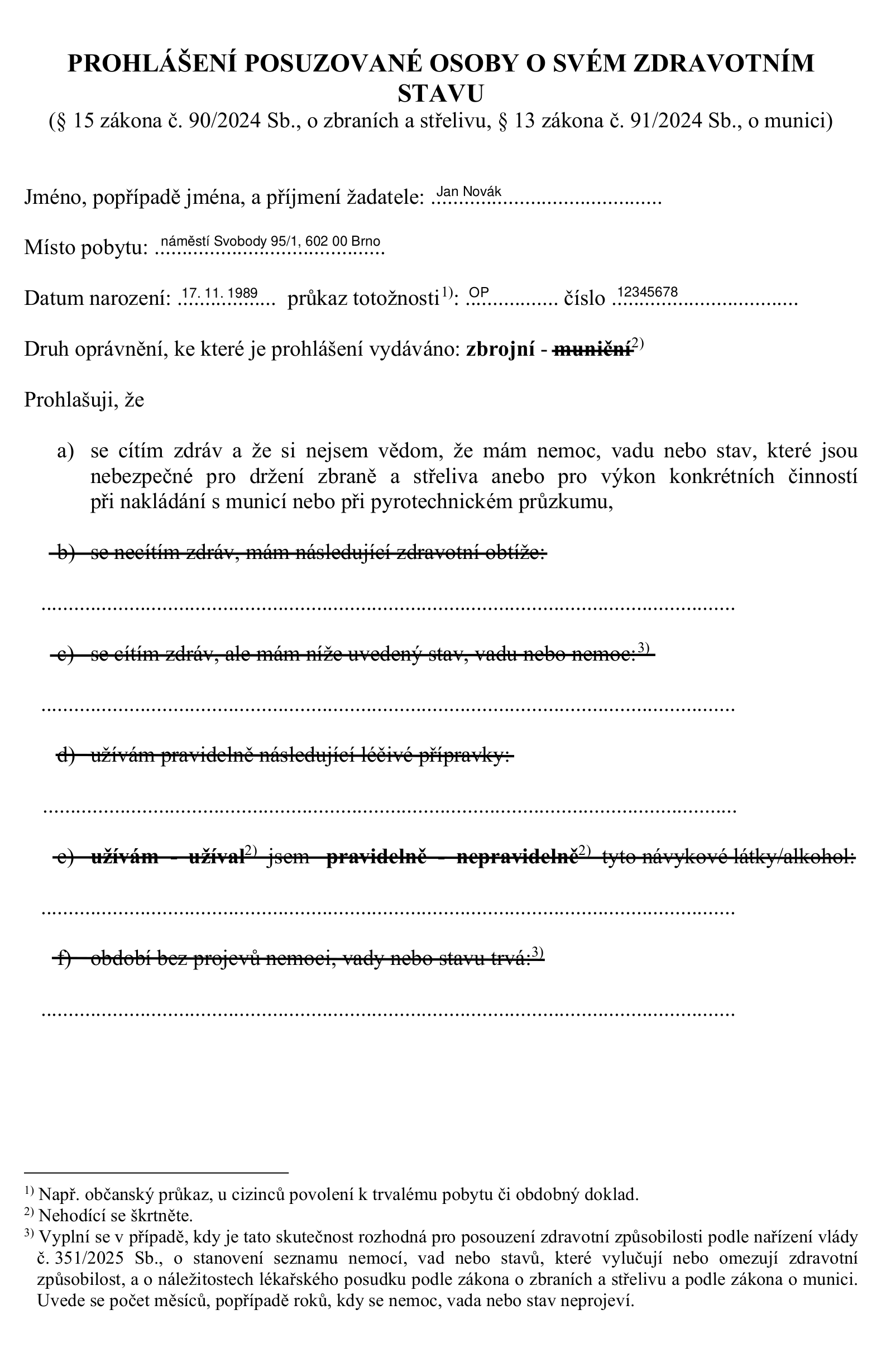 Mějte na paměti, že posudek o zdravotní způsobilosti pro držení zbrojního oprávnění nesmí být v době jeho předložení starší než 3 měsíce.
