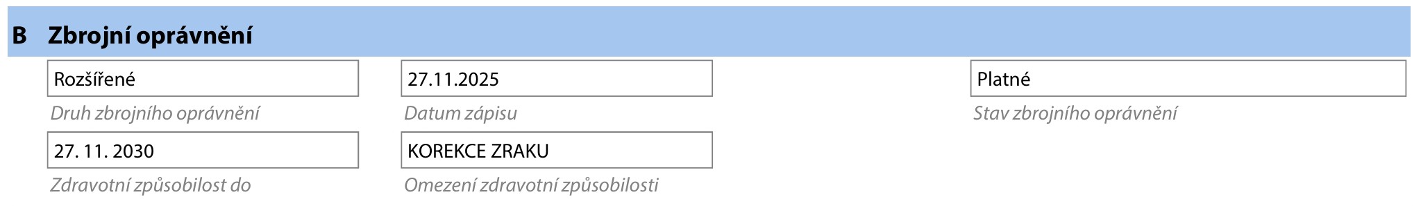 Termín, kdy uplyne doba platnosti posudku, zjistíte v části B zbrojního listu: