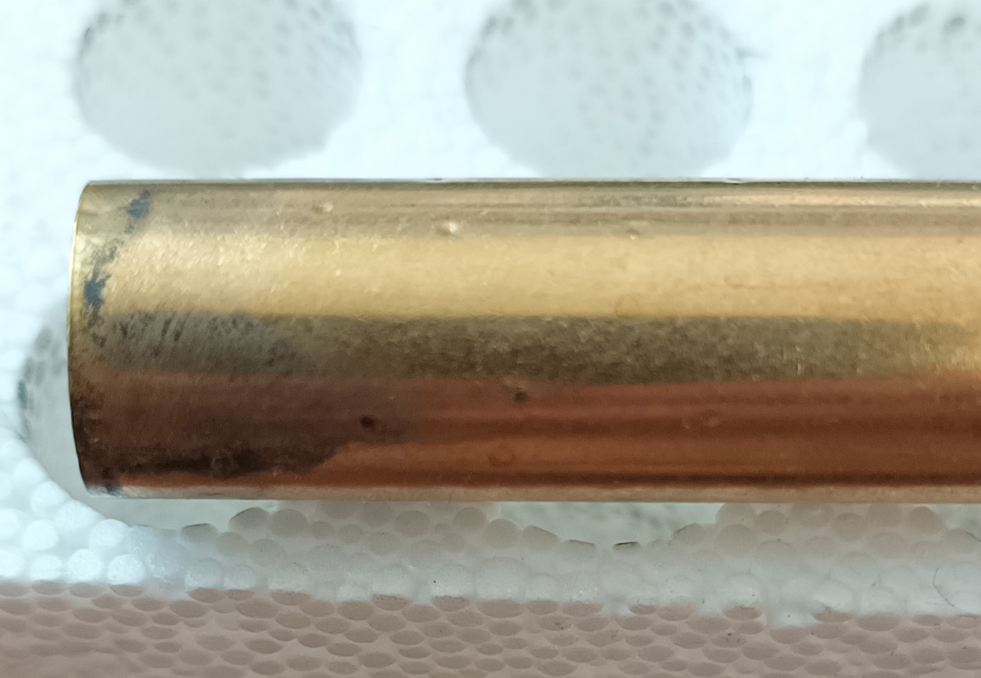 Jak je vidět z tabulek i grafu výše, na magickou hranici 550 m/s a 4000 J se mi podařilo dosáhnout s navážkou 50 grs D073.4, což je taky dle GRT hraniční navážka s tlakem 31726 PSI. Bohužel, nespálených prachových zrn bylo i v této maximální navážce opravdu hodně a občas se dokonce „obtiskly“ zbytky prachu v komoře z předchozího výstřelu do nábojnice při výstřelu následném – viz mikroskopické důlky na nábojnici (na fotce níže je asi nejextrémnější případ, na ostatních nebylo buďto nic, nebo 1 mini důlek, takže tak strašné to zase není):