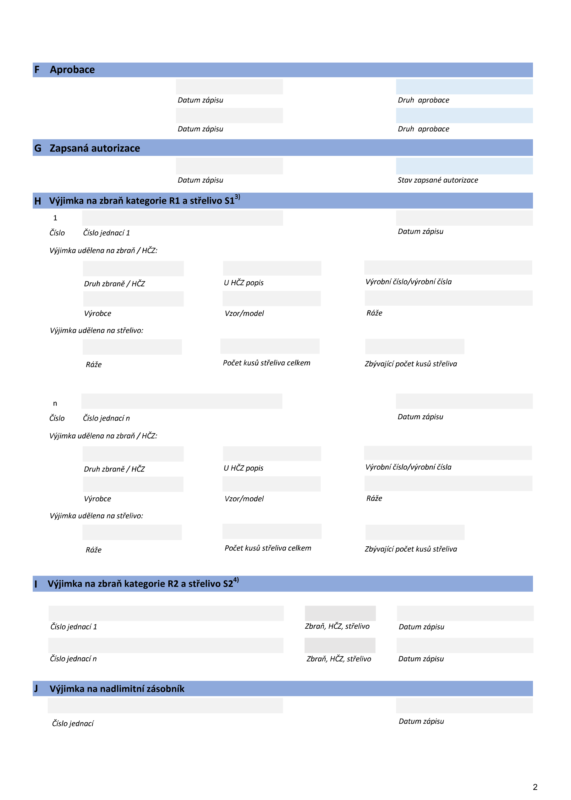 - výjimku na zbraně kategorie R1 a R2, na střelivo kategorie S1 a S2, na nadlimitní zásobníky a povolení na zbraně kategorie R3;