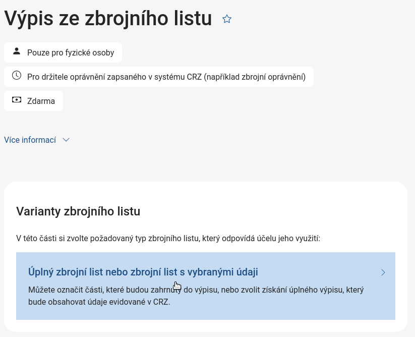 Poté pokračujte výběrem možnosti Úplný zbrojní list nebo zbrojní list s vybranými údaji: