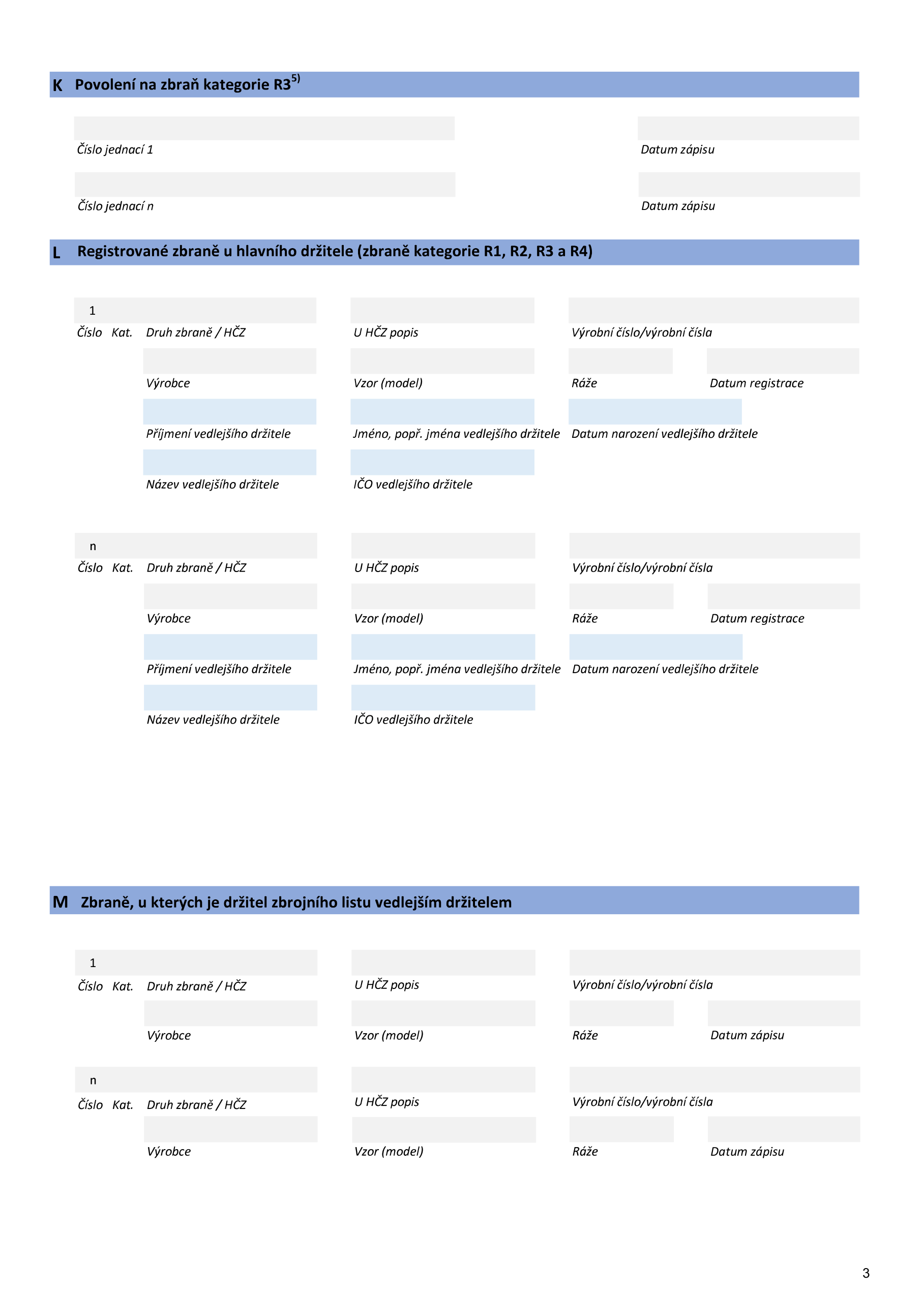 - zápis vedlejších držitelů zbraně.