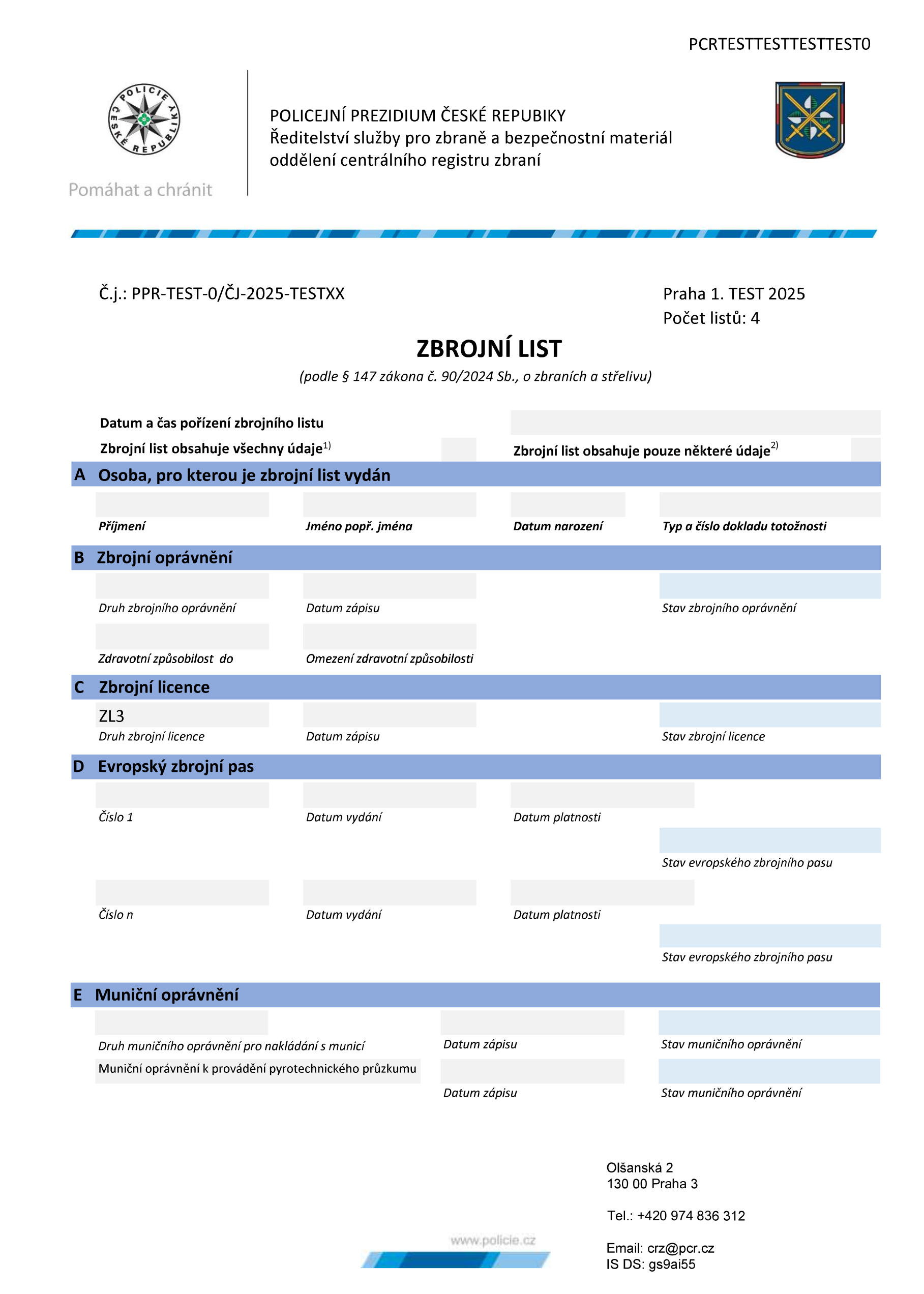 Zbrojní list je ověřený výstup z centrálního registru zbraní, který může být použit k prokázání držení oprávnění a zbraní. Po roce 2026 tak de facto nahrazuje kartičky zbrojního průkazu a průkazu zbraně.