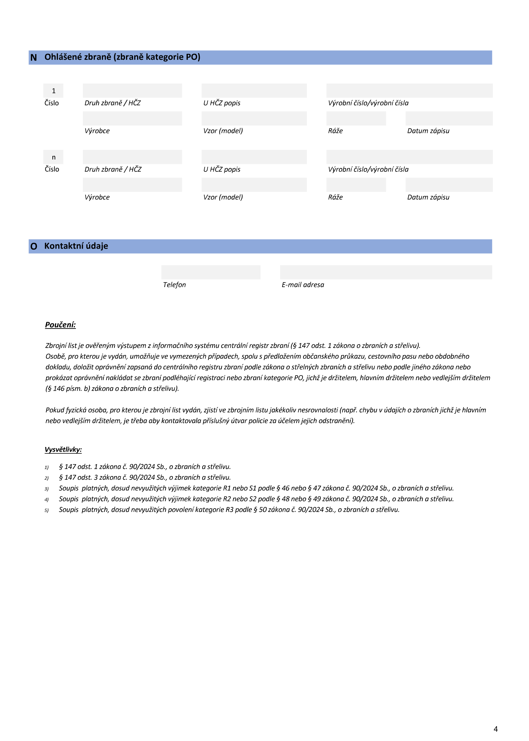 - registraci zbraní kategorie R1, R2, R3 a R4, ohlášení zbraní kategorie PO;